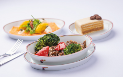 In short and medium haul flights, cold or hot light meals consisting of salads, dishes and desserts (pastries, fresh fruits…) are served and a selection of cheeses