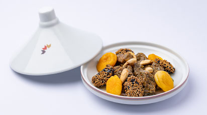 In long haul flights, A la carte service lets you choose the time of your meal. A delicious and varied, with a particular emphasis on promoting Moroccan cuisine and traditions. Moroccan taJines prepared with care by our Chefs are served on board in real traditional tagines. Soups and veloutés are also on the menu. For small appetites, the ‘All day’ section has been created to give you the possibility of eating a hot or cold snack.